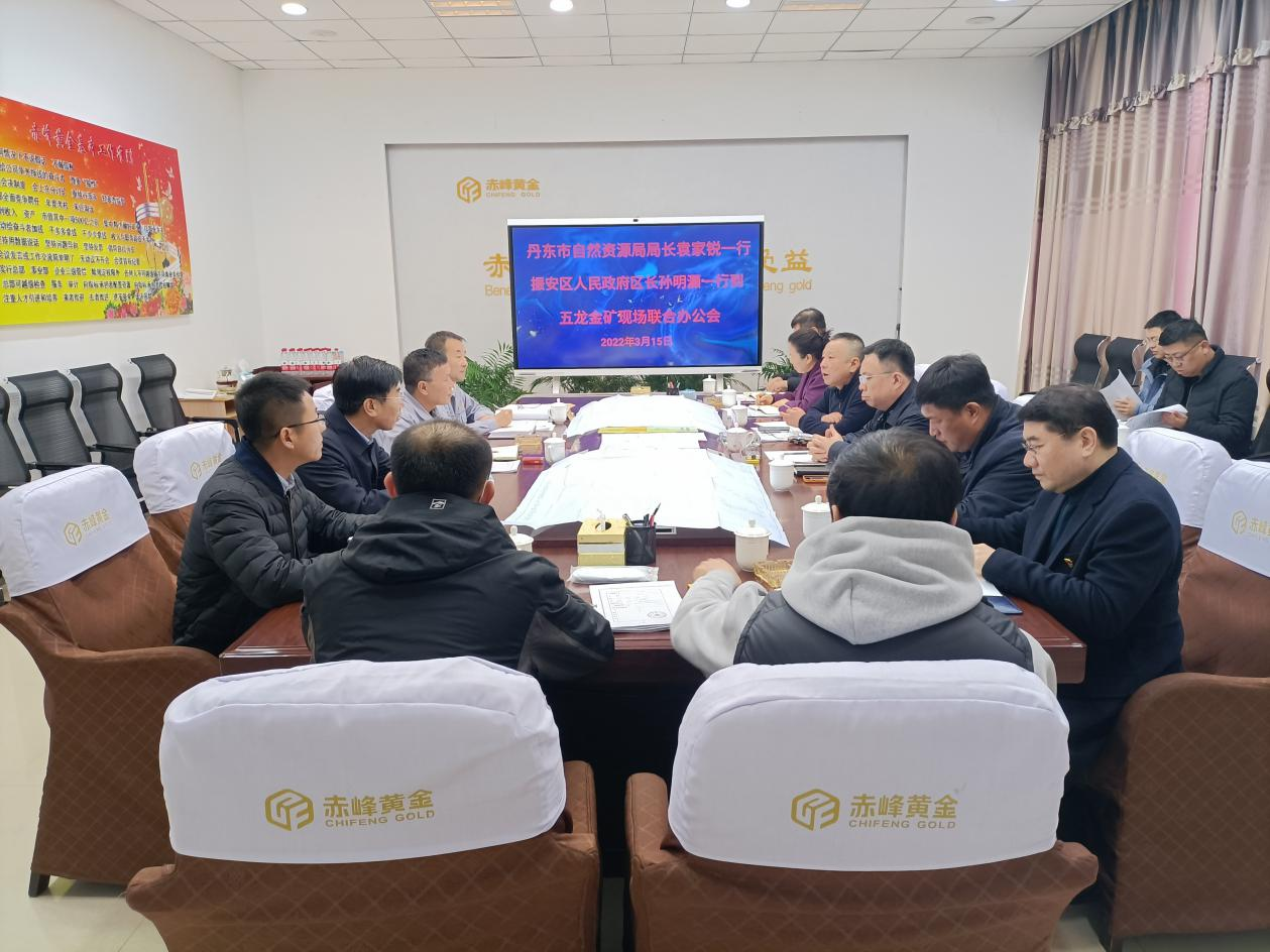 3月15日,丹東市自然資源局局長袁家銳、副局長王會,會同振安區人民政府區長孫明灝帶領相關科室人員一行16人到五龍礦業召開現場辦公會。五龍礦業總經理劉金、總工程師邱海成參加了會議。
